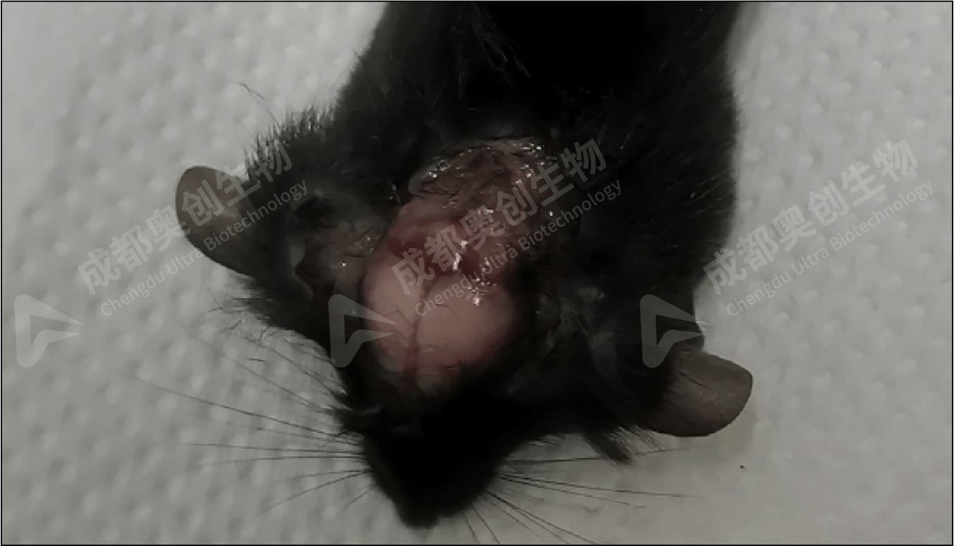 (1) 剥开头部皮肤暴露出颅骨。