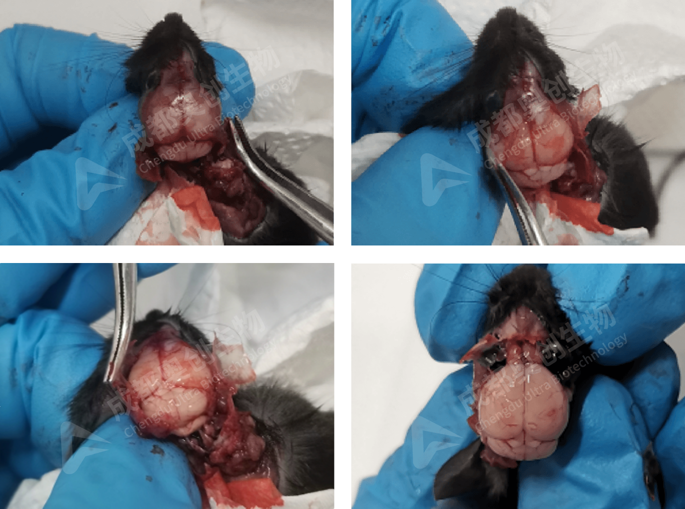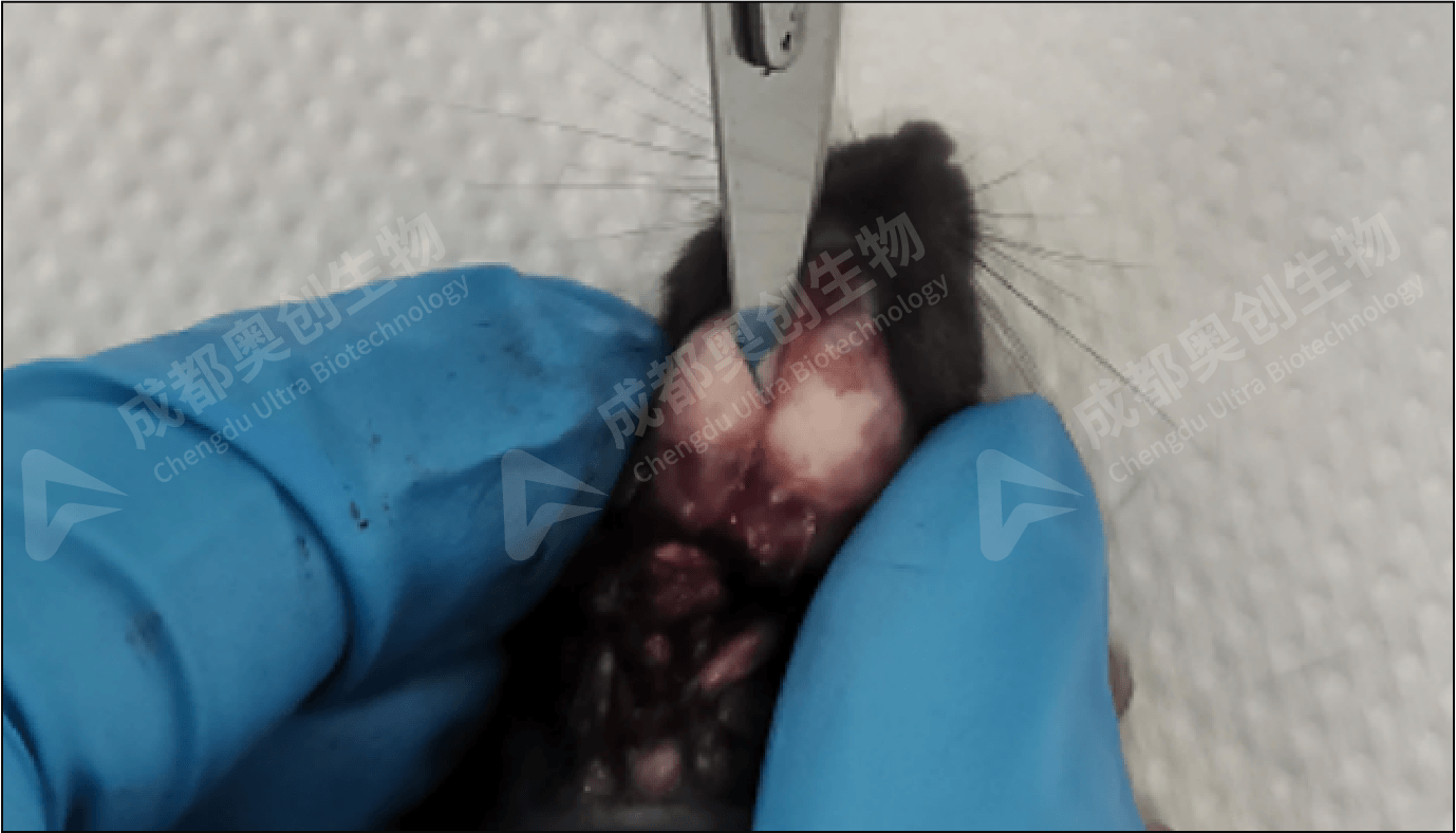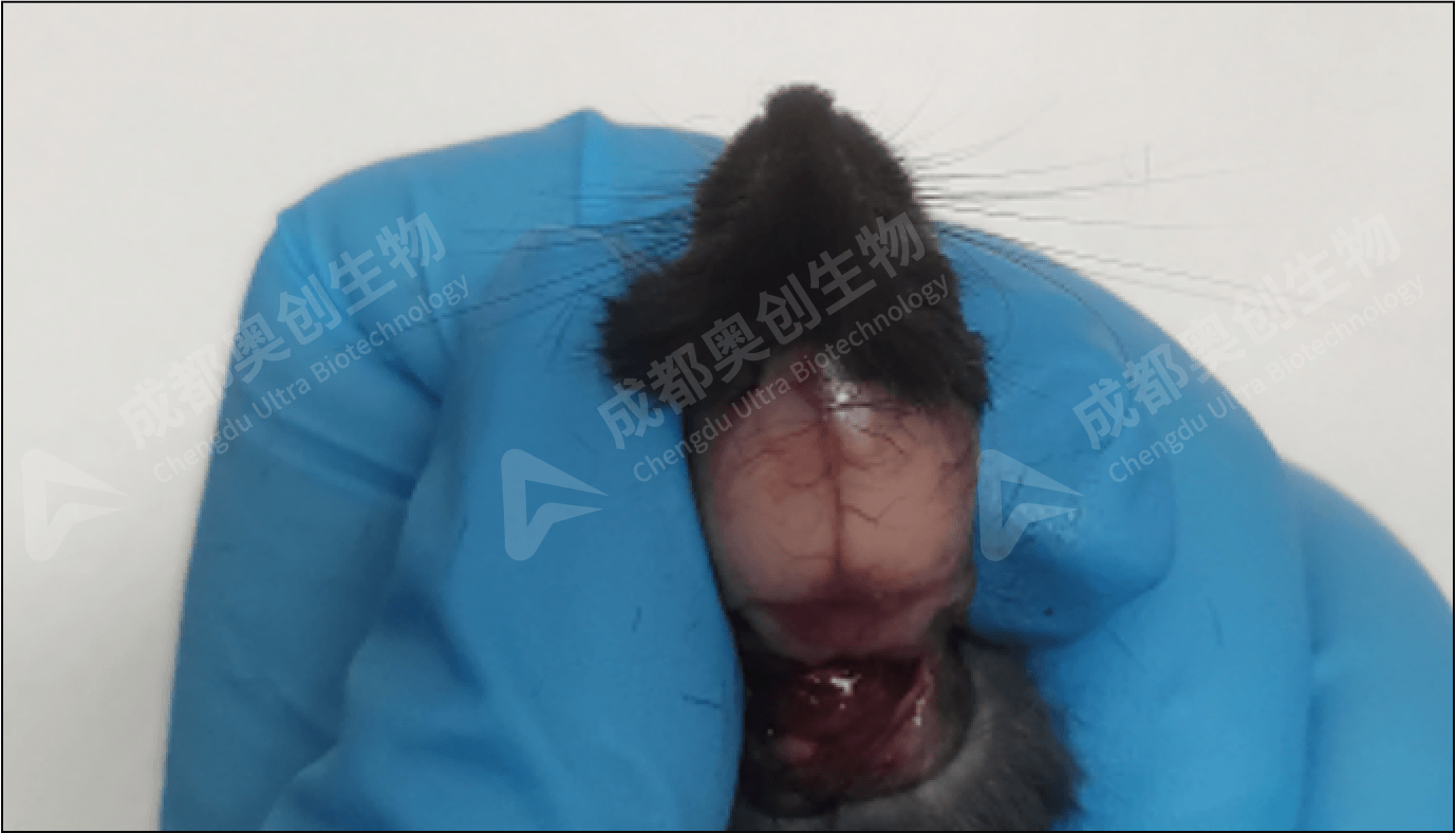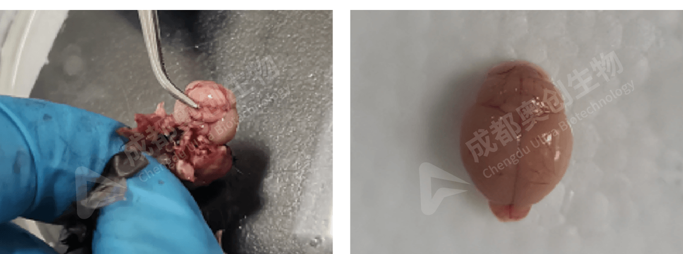 (5)用小剪剪断脑底部神经,轻轻剥离摘出脑组织,注意不要损伤组织。