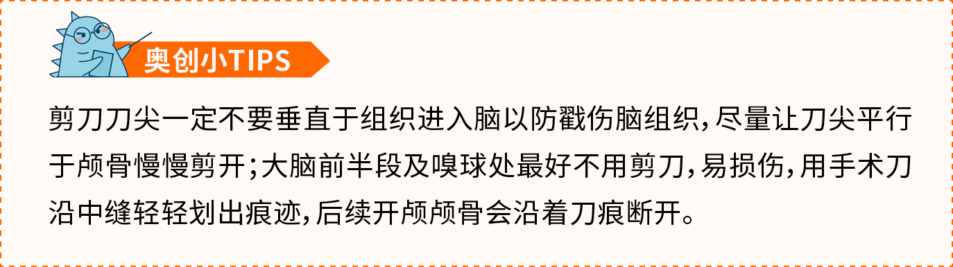 (4) 揭开头顶部颅骨暴露出脑。