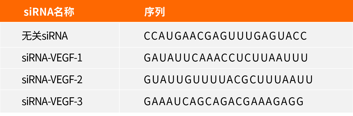 1、siRNA设计合成:NCBI搜索小鼠VEGF的基因信息,使用设计软件设计出的siRNA序列,送合成公司合成,具体信息如下: