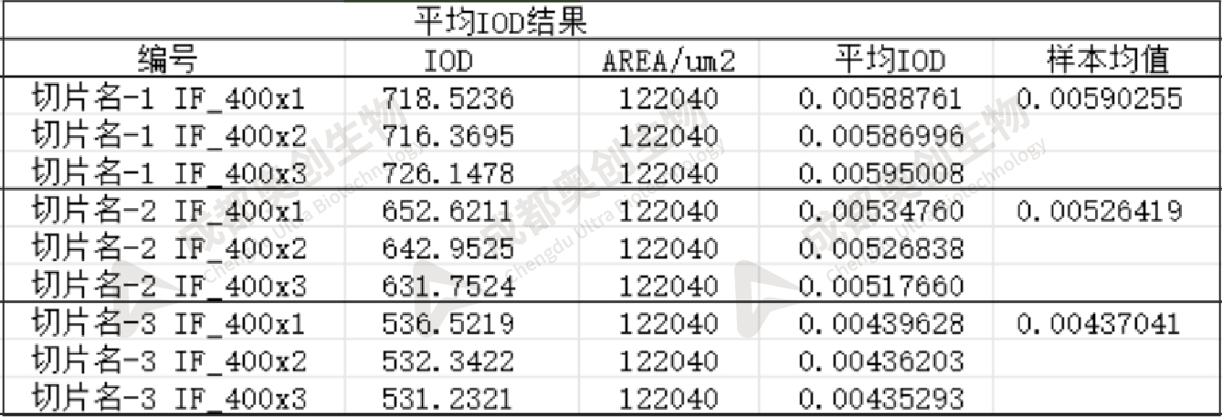 2、IHC和IF:采用数字切片扫描仪/显微镜进行图像采集。每张切片优于低倍下观察全部组织,再分别选取3个视野采集200/400倍显微图像。采用Image-ProPlus图像分析系统测定所采集全部图像积分光密度(IOD)表示;每例样本的积分光密度为3张图像的平均值。