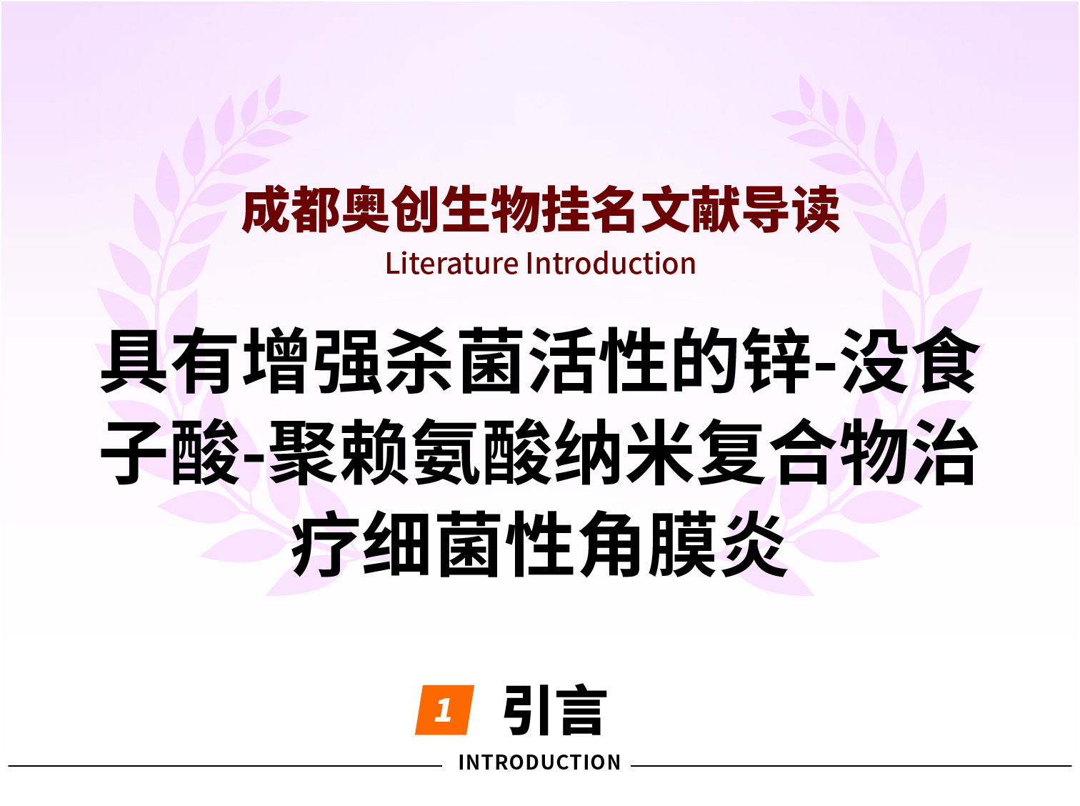 成都奥创生物参与了名为《 Zinc–gallic acid–polylysine nanocomplexes with enhanced bactericidal activity for the treatment of bacterial keratitis》的实验项目,这项研究构建了锌(Zn2+)-没食子酸-聚-L-赖氨酸纳米复合物(ZGNC)系统,为细菌性角膜炎的治疗提供了一种有前景的金属离子递送纳米平台。