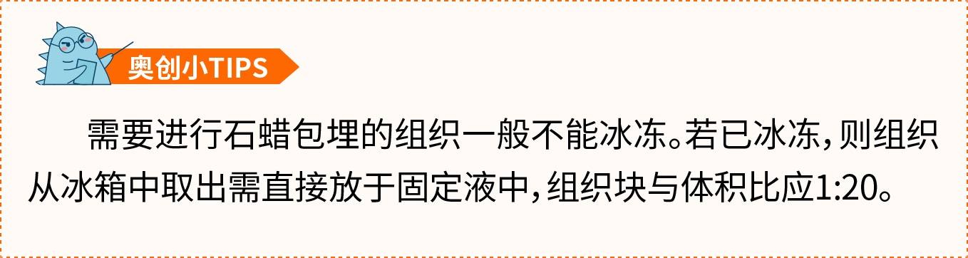 (4)切取的材料应小而薄,便于固定液迅速渗入内部。一般厚度不超过3mm,大小不超过5×5m㎡;