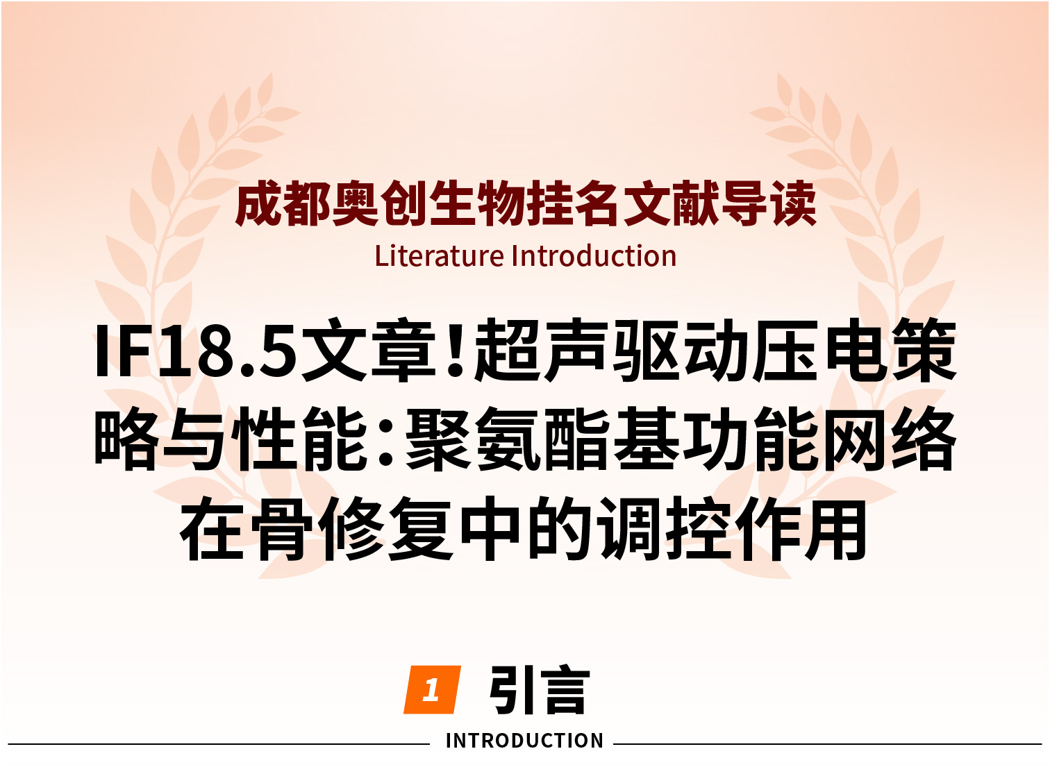 成都奥创生物参与了名为《Ultrasound-Driven Piezoelectric Strategy and Performance:Polyurethane-Based Functioning Networks in Actuating Bone Repair》的实验项目,这项研究构建构建了聚氨酯(PU)基复合支架(掺入羟基磷灰石/钛酸钡,CHA/BaTiO3),为骨修复提供了一种有前景的修复平台。