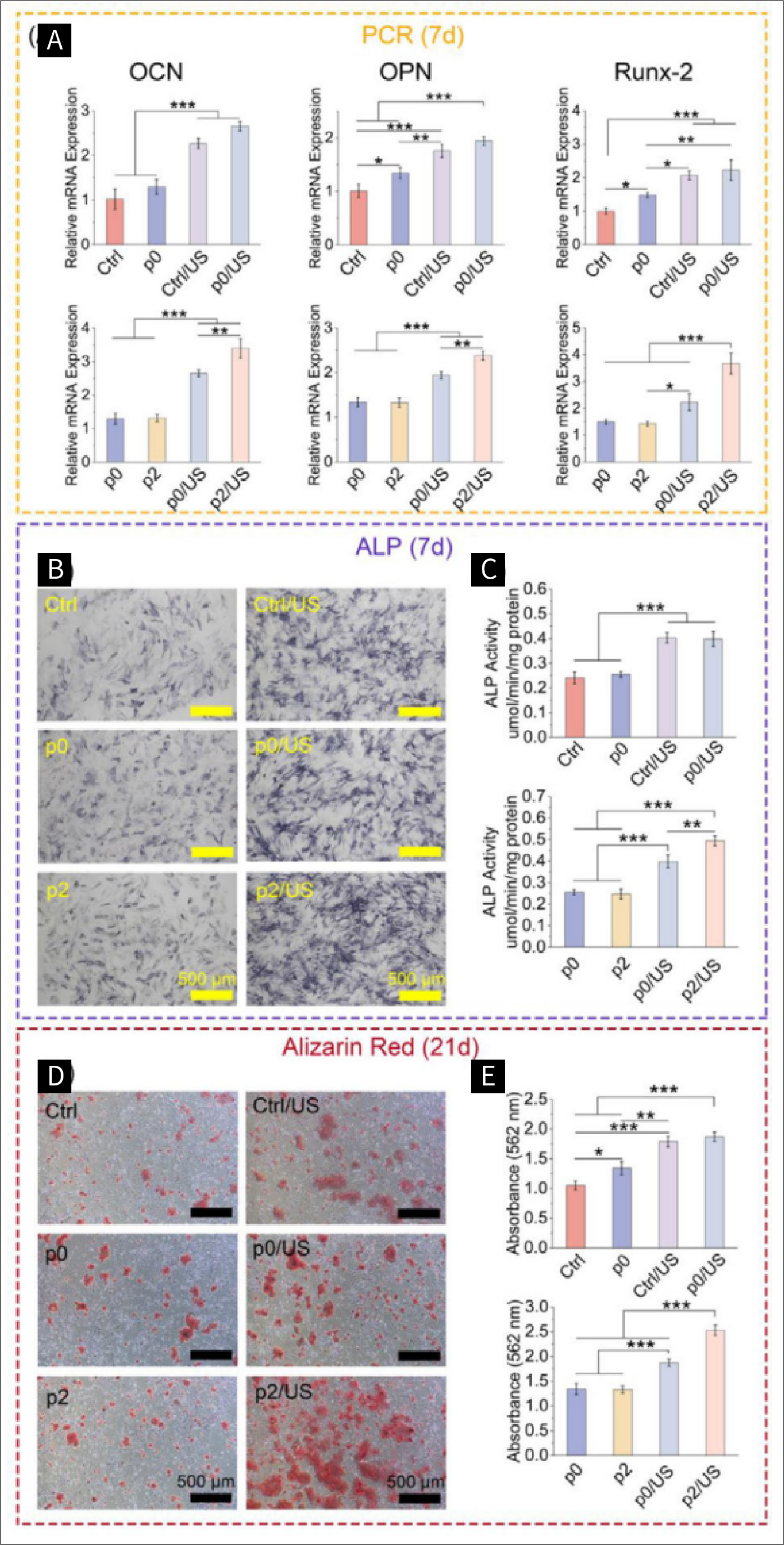 图五 超声诱导的压电刺激对成骨分化的影响: