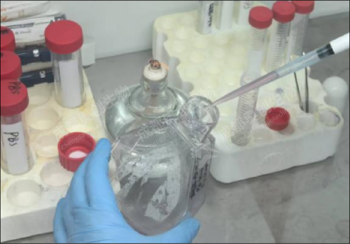 i.解冻:提前 1 天将 Matrigel 置于 4℃冰箱缓慢解冻,解冻时可将基质胶放入冰块中,以确保基质胶能够完全溶解。
