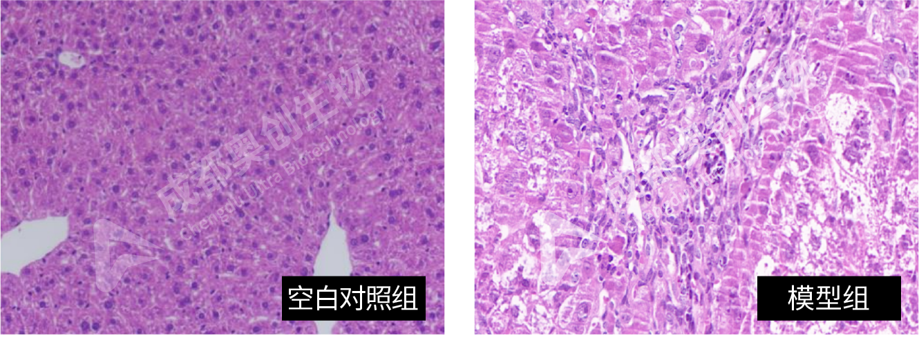 HE(HE染色结果显示模型组肝细胞变性坏死伴有炎性细胞浸润)