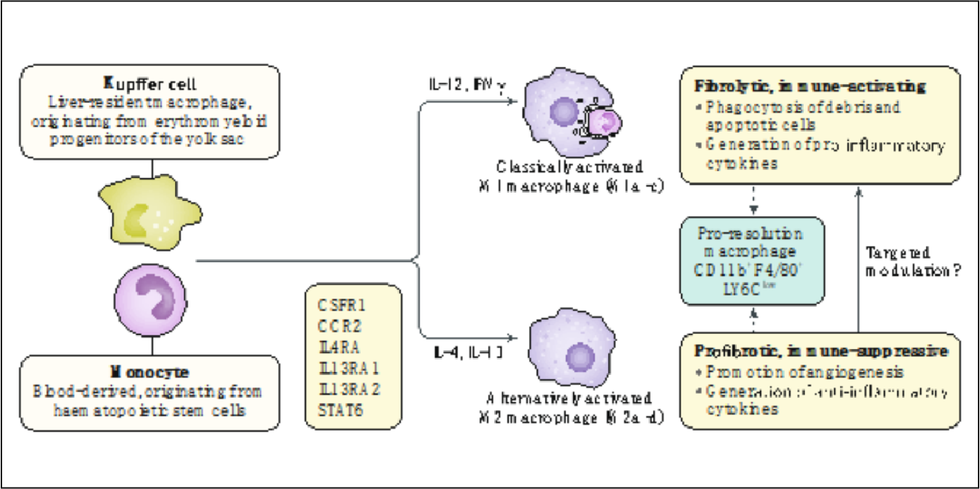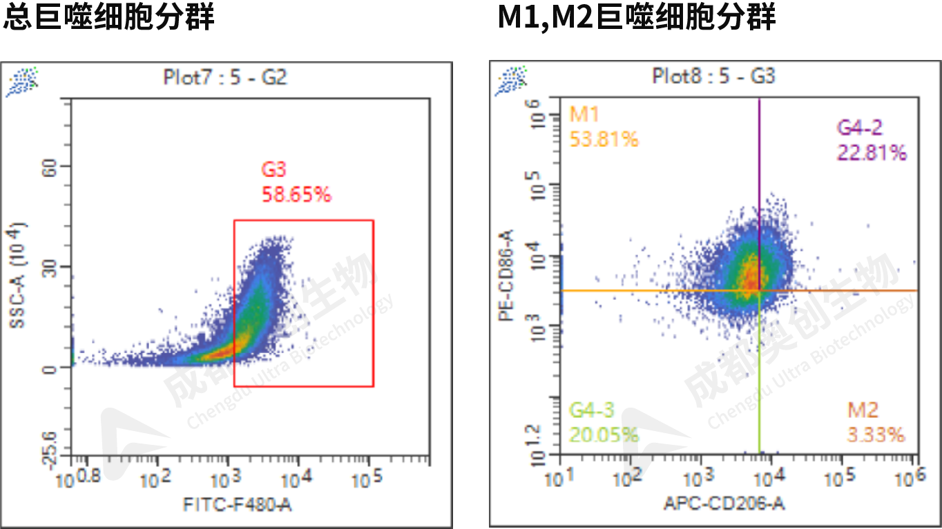 肝脏巨噬细胞是一类具有异质性的免疫细胞群,主要包含肝脏固有巨噬细胞(Kupffer细胞)和单核细胞来源的巨噬细胞。Kupffer细胞可极化为 M1 或 M2 表型,前者可促进肝脏炎性反应,而后者则可抑制炎性反应并加快组织修复。肝脏巨噬细胞在肝纤维化进展和消退方面发挥着双重作用。在肝纤维化起始和进展阶段,巨噬细胞被活化并上调转化生长因子-β(TGF-β)、炎性因子及趋化因子的表达,从而激活肝星状细胞,促进了肝脏的炎性反应和纤维化。然而,在各种外源性刺激下,肝脏巨噬细胞也可通过降解ECM和释放抗炎因子抑制肝脏炎性反应和纤维化的进展。奥创生物可以为客户提供巨噬细胞M1和M2极化的流式检测或免疫荧光检测,且公司以备货相关指标抗体,无需客户额外提供。